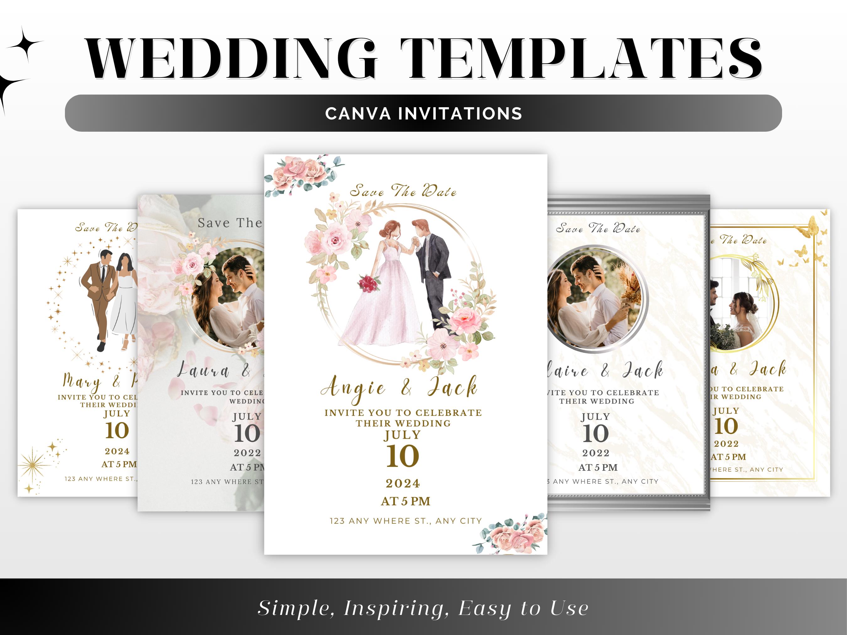 Designed with love and attention to detail, this bundle offers 5 unique styles to perfectly match your wedding theme, whether it's modern elegance, rustic charm, vintage flair, or boho-chic vibes. Each template is fully customizable in Canva, making it easy for you to add your personal touch. No design skills? No problem! Simply edit, download, and print your invitations from the comfort of your home or at your preferred print shop. Create unforgettable first impressions with invitations that reflect your love story and set the tone for your special day!